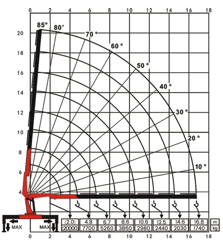 | Грузоподъёмность на максимальном вылете (кг) | 16.8 м - 1 740 кг |