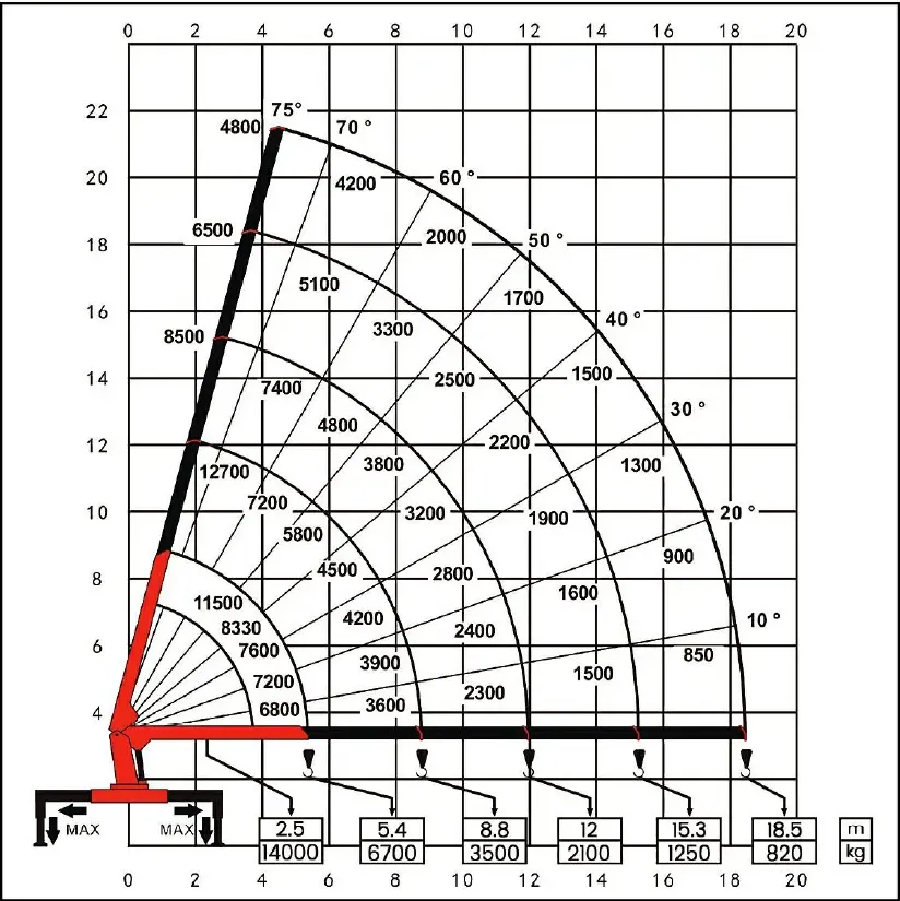 | Грузоподъёмность на максимальном вылете (кг) | 18.0м - 14 000кг |