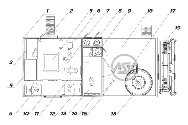 В задней части находится дверь двухстворчатая для доступа в рабочий отсек с бортовой платформы.