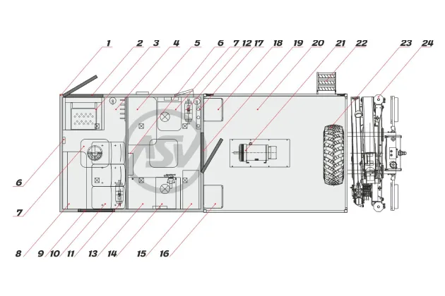 В задней части фургона находится дверь одностворчатая, для выхода в грузовую платформу.