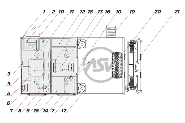 АРОК предназначен для перевозки экипажа в пассажирском отсеке, транспортирования оборудования для выполнения комплекса работ по ремонту и техническому обслуживанию водопроводного и нефтепроводного оборудования и т. д.).
