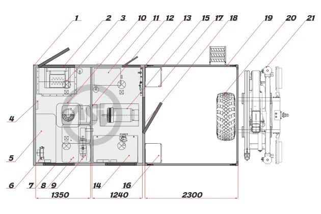Агрегат АРОК предназначен для перевозки экипажа в пассажирском отсеке, транспортирования оборудования для выполнения комплекса работ по ремонту и техническому обслуживанию водопроводного и нефтепроводного оборудования и т. д.).