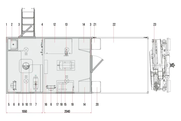 С заднего торца для входа в технологический отсек с оборудованием предусмотрена дверь.
