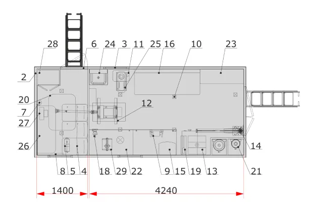 Кузов-фургон бескаркасный (5820х2480х2000), выполнен согласно ТУ 4521-002-34559825-2015. Кузов-фургон представляет собой конструкцию из пятислойных «сэндвич»-панелей». Снаружи и изнутри фургон обшит стальным оцинкованным листом с полимерным лакокрасочным покрытием («плакированный лист»). Пространство между внешней и внутренней обшивкой фургона заполнено слоем теплоизоляционного материала, имеющего низкую теплопроводность и низкую горючесть. Для усиления конструкции между утеплителем и обшивкой находятся слой фанеры. Изнутри фургона пол покрыт автомобильным линолеумом на резиновой основе («автолин»). Кузов фургон разделен глухой перегородкой на два отсека: отсек перевозки пассажиров и рабочий отсек.