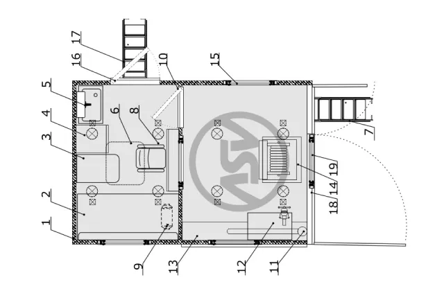 В задней части КФ расположена   двухстворчатая распашная дверь со штанговым замком для доступа в лебедочный отсек, с механизмом фиксации в открытом положении. Справа по ходу движения,  в передней части КФ расположена одностворчатая дверь для доступа в отсек оператора. Для входа в кузов-фургон используются выдвижные лестницы (трапы). Между отсеками перегородка с открывающейся дверью. В днище расположен люк для доступа к агрегатам  шасси. В крыше установлен аварийно – вентиляционный  люк с вентилятором. Слева по ходу движения в задней части расположена ниша лубрикаторного отсека с ложементами для укладки лубрикаторов.