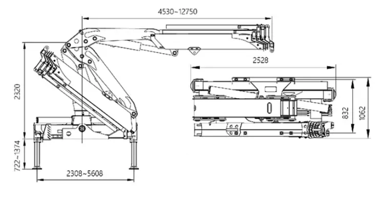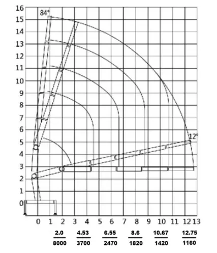 | Грузоподъёмность на максимальном вылете (кг) | 12.75м - 1 160кг |