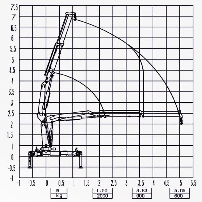 | Грузоподъёмность на максимальном вылете (кг) | 5.05м - 600кг |