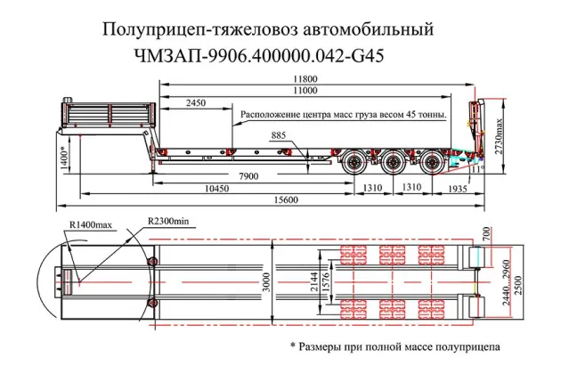 Масса снаряжённого полуприцепа13.5 т