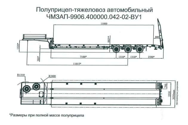 Масса снаряжённого полуприцепа 11 т
