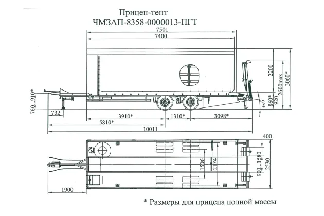 Масса снаряжённого полуприцепа 4 т