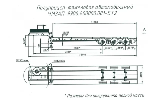 Полуприцеп-тяжеловоз автомобильный ЧМЗАП 99064 по спецификации 081 БТ2