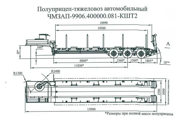 Полуприцеп-тяжеловоз автомобильный ЧМЗАП 99064 по спецификации 081 КШТ2