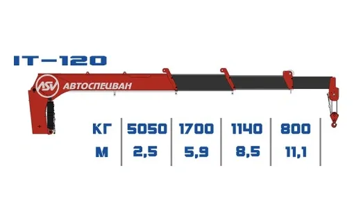 INMAN IT 120 новый тросовый кран-манипулятор в сегменте 5-ти тонных КМУ. Кран-манипулятор имеет 3 гидравлически выдвигающиеся секции, что обеспечивает один из самых больших вылетов в своем классе – 11,1 м. Новая система выдвижения аутригеров с регулирующими роликами обеспечивает легкость ручного выдвижения балок. Длина каната лебедки составляет 75 метров. INMAN IT 120 обладает качественной окраской, а также всеми необходимыми датчиками и приборами безопасности.