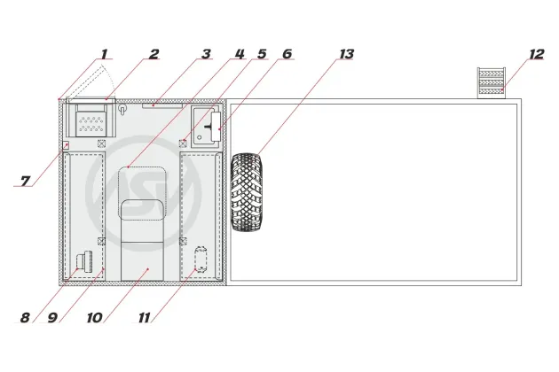 Кузов-фургон представляет собой конструкцию из пятислойных «сэндвич-панелей». Снаружи и изнутри фургон обшит стальным оцинкованным листом с полимерным лакокрасочным покрытием («плакированный лист»). Цвет фургона снаружи – оранжевый (RAL 2004). Цвет фургона внутри – белый (RAL 9003).