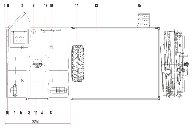 Кузов-фургон представляет собой конструкцию из пятислойных «сэндвич-панелей». Снаружи и изнутри фургон обшит стальным оцинкованным листом с полимерным лакокрасочным покрытием («плакированный лист»). Пространство между внешней и внутренней обшивкой фургона заполнено слоем теплоизоляционного материала (пенополистирол), имеющего низкую теплопроводность и низкую горючесть. Для усиления конструкции между утеплителем и обшивкой находятся слой фанеры. Изнутри фургона пол покрыт автомобильным линолеумом на резиновой основе («автолин»). Фургон в исполнении с боковыми скосами. Наружная обшивка – плакированный металл оранжевого цвета (RAL 2004) и внутренняя обшивка – плакированный металл белого цвета (RAL 9003). Обрамление фургона: наружное – алюминиевый профиль, внутреннее – алюминиевый профиль.