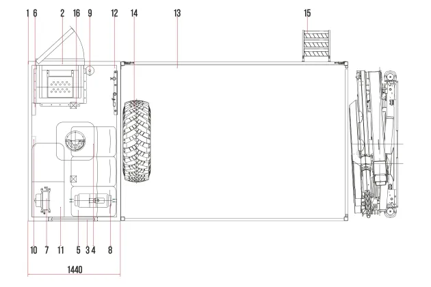 В качестве КМУ в изделии используется ИМ 50. КМУ смонтирована в хвостовой части ТС и предназначена для погрузки и разгрузки перевозимых грузов, монтажно-демонтажных, ремонтно-восстановительных и других работ.