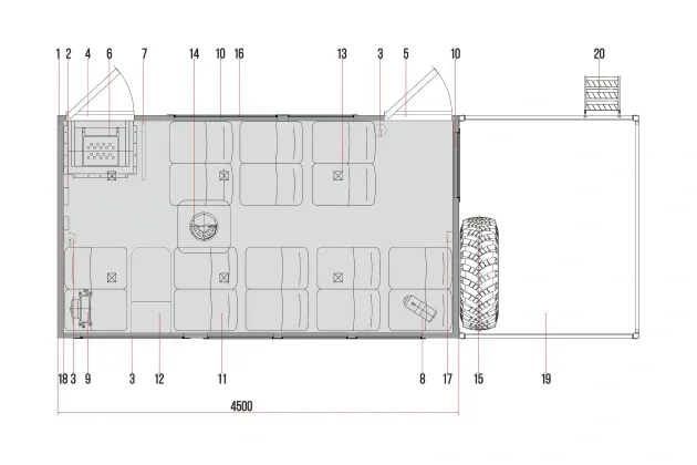 Кузов-фургон представляет собой конструкцию из пятислойных «сэндвич-панелей». Снаружи и изнутри фургон обшит стальным оцинкованным листом с полимерным лакокрасочным покрытием («плакированный лист»). Пространство между внешней и внутренней обшивкой фургона заполнено слоем теплоизоляционного материала (пенополистирол), имеющего низкую теплопроводность и низкую горючесть. Для усиления конструкции между утеплителем и обшивкой находятся слой фанеры. Изнутри фургона пол покрыт автомобильным линолеумом на резиновой основе («автолин»). Фургон в исполнении без боковых скосов. Наружная обшивка – плакированный металл белого цвета (RAL 9003) и внутренняя обшивка – плакированный металл белого цвета (RAL 9003).