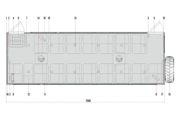 Обрамление фургона: наружное – алюминиевый профиль, внутреннее – алюминиевый профиль. Дверные проемы (порталы) из нержавеющей стали.