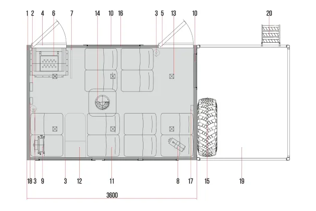 Обрамление фургона: наружное – алюминиевый профиль, внутреннее – алюминиевый профиль. Дверные проемы (порталы) из нержавеющей стали.
