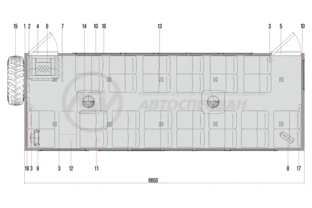 Кузов-фургон представляет собой конструкцию из пятислойных «сэндвич-панелей». Снаружи и изнутри фургон обшит стальным оцинкованным листом с полимерным лакокрасочным покрытием («плакированный лист»). Пространство между внешней и внутренней обшивкой фургона заполнено слоем теплоизоляционного материала пенополистирол, имеющий низкую теплопроводность и низкую горючесть. Для усиления конструкции между утеплителем и обшивкой находятся слой фанеры. Изнутри фургона пол покрыт автомобильным линолеумом на резиновой основе («автолин»).