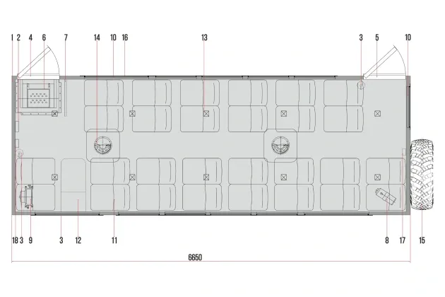 Кузов-фургон представляет собой конструкцию из пятислойных «сэндвич-панелей». Снаружи и изнутри фургон обшит стальным оцинкованным листом с полимерным лакокрасочным покрытием («плакированный лист»). Пространство между внешней и внутренней обшивкой фургона заполнено слоем теплоизоляционного материала пенополистирол, имеющего низкую теплопроводность и низкую горючесть. Для усиления конструкции между утеплителем и обшивкой находятся слой фанеры. Изнутри фургона пол покрыт автомобильным линолеумом на резиновой основе («автолин»). Фургон в исполнении с боковыми скосами. Наружная обшивка - плакированный металл оранжевого цвета (RAL 2002) и внутренняя обшивка - плакированный металл белого (RAL 9003). Обрамление фургона: наружное – алюминиевый профиль, внутреннее – алюминиевый профиль. Дверные проемы (порталы) из нержавеющей стали.
