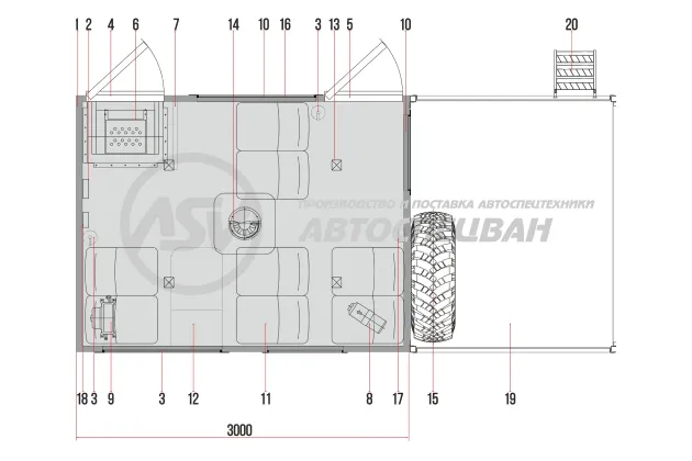 Кузов-фургон представляет собой конструкцию из пятислойных «сэндвич-панелей». Снаружи и изнутри фургон обшит стальным оцинкованным листом с полимерным лакокрасочным покрытием («плакированный лист»). Пространство между внешней и внутренней обшивкой фургона заполнено слоем теплоизоляционного материала (пенополистирол), имеющего низкую теплопроводность и низкую горючесть. Для усиления конструкции между утеплителем и обшивкой находятся слой фанеры. Изнутри фургона пол покрыт автомобильным линолеумом на резиновой основе («автолин»). Фургон в исполнении без боковых скосов. Наружная обшивка - плакированный металл синего цвета (RAL 5005) и внутренняя обшивка - плакированный металл белого (RAL 9003). Обрамление фургона: наружное – алюминиевый профиль, внутреннее – алюминиевый профиль. Дверные проемы (порталы) из нержавеющей стали.