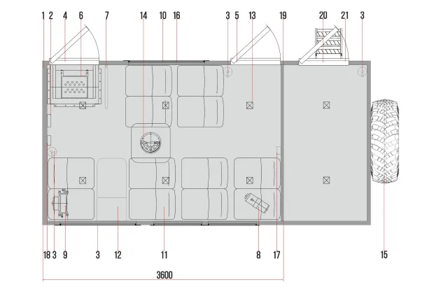 21. Лестница для подъема в задний отсек