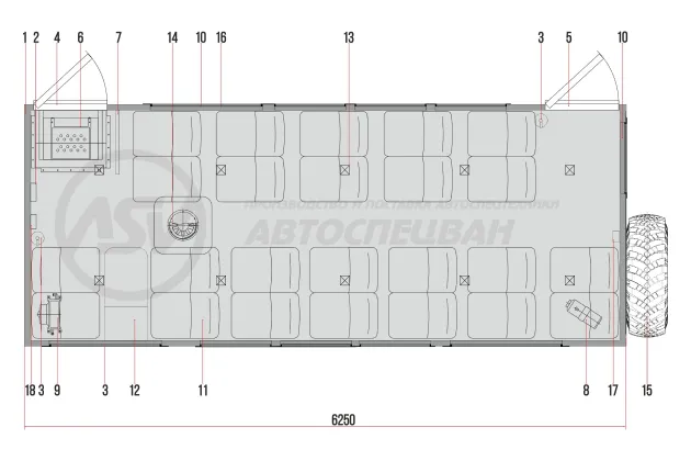 14. Люк аварийно-вентиляционный с вентилятором (1 шт.)