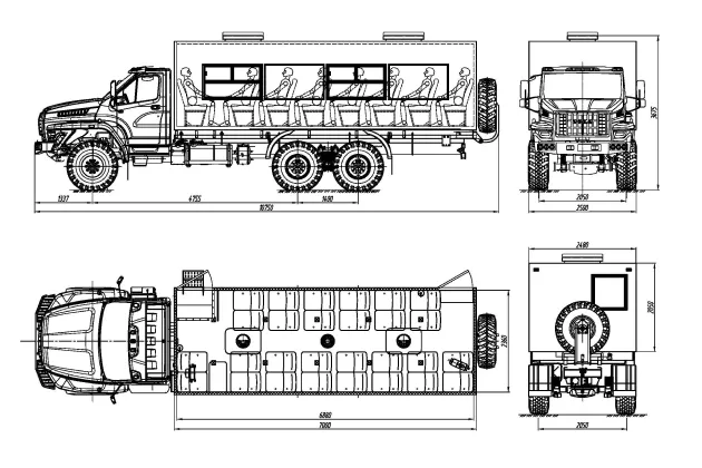 Кузов-фургон представляет собой конструкцию из пятислойных «сэндвич-панелей». Снаружи и изнутри фургон обшит стальным оцинкованным листом с полимерным лакокрасочным покрытием («плакированный лист»). Пространство между внешней и внутренней обшивкой фургона заполнено слоем теплоизоляционного материала (пенополистирол), имеющего низкую теплопроводность и низкую горючесть. Для усиления конструкции между утеплителем и обшивкой находятся слой фанеры. Изнутри фургона пол покрыт автомобильным линолеумом на резиновой основе («автолин»). Фургон в исполнении без боковых скосов. Наружная обшивка - плакированный металл синего цвета (RAL 5002) и внутренняя обшивка - плакированный металл белого цвета (RAL 9003).